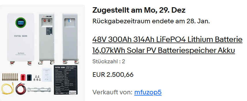 32 kWh für unsere E-Mobil-Inselanlage zum Preis von 2500 € inkl. Lieferung & Zubehör = unter 80 € pro kWh
