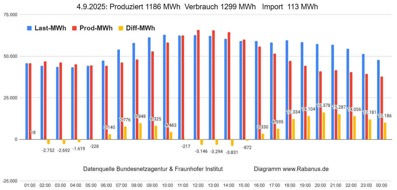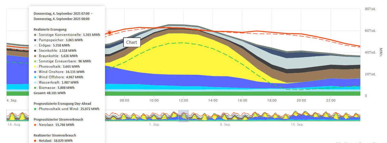 Lastkurve in MWh vom 04.09.2025 (Donnerstag) l k Speicherstrategie smard echarts