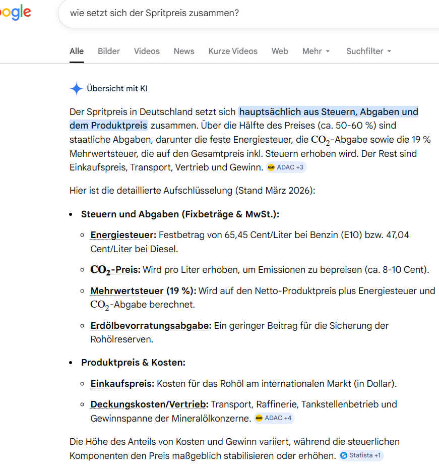 Recherche: Wie setzt sich der Spritpreis zusammen?