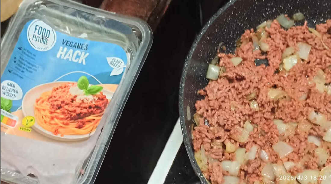 Veganes Hack erneut schmachhafter, aber müsste billiger als tierisches Hack sein (2026). - Mir genügt immer besser & lus Zwiebeln, Pfeffer