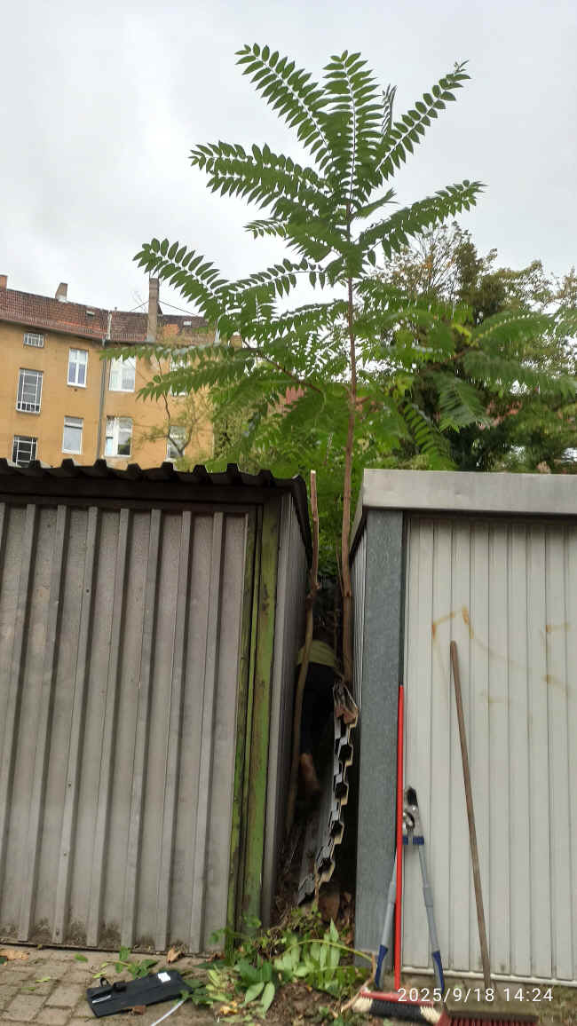 gut, dass meine Frau zwischen die Garagen passt & die 2 Götterbäume absägen kann