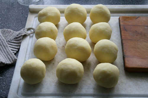 Klöße aus Fertigteig sind schnell gedreht, - dann in leicht gesalzenes, kochendes Wasser gelegt, - zwischen zwanzig und 25 Minuten lang ziehen lassen - und FERTIG.