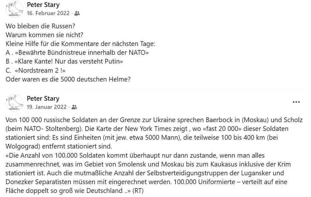 PutinTrolle ignorierten bis zum Einmarsch Putins kriegerische Absichten