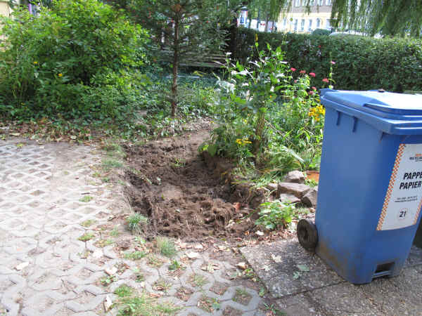 Nach Jahrzehnten der Pflege dieses "Vorgartengewässers" (aber auch "Vorgartenfalle") gruben wir sie aus und erweiterten das kleine Blumenbeet.