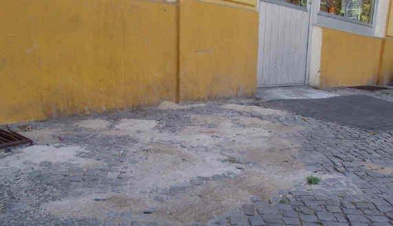 Hier haben Wespen großflächig eine gepflasterte Fläche untergraben.